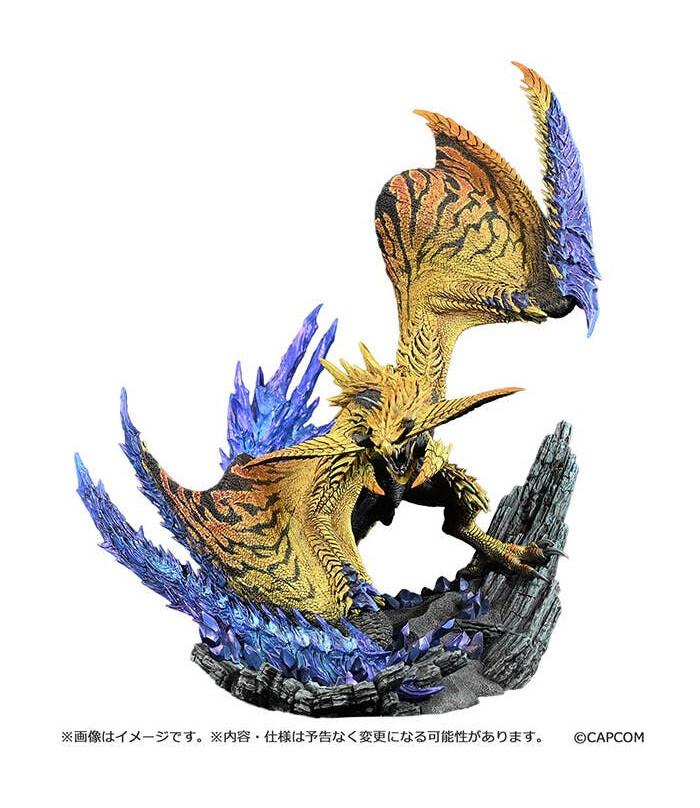 Rey Dau, the apex predator of the Windward Plains in "Monster Hunter Wilds," is joining the "Figure Builder Creators Model" lineup from Capcom! Its imposing form, piercing the plateau like a lightning strike, is accurately recreated in this beautiful figure; every scale, claw, horn, and fang is painstakingly sculpted. The scales and the base change appearance depending on the angle you view them from, just like in the game, and the wings and tail, clad in Blue Thunder Crystal, feature different textures and sharp, bold shapes. This figure will be the center of attention wherever you choose to display it -- order it for your own collection today!